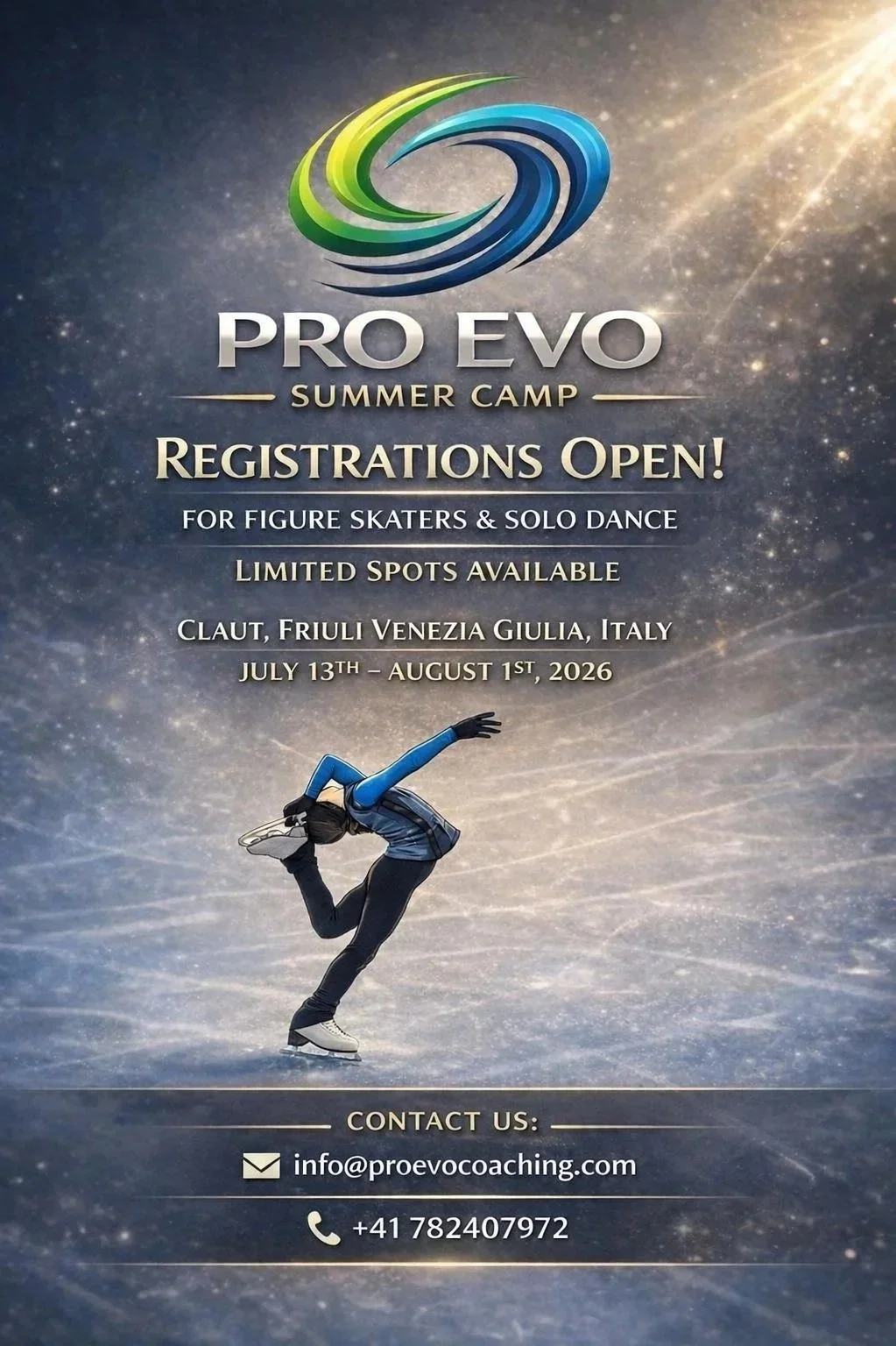 Il Clup Pattinaggio Lugano è lieto di proporvi il PRO EVO Summer Camp organizzato dal nostro Direttore tecnico, Zsolt Kosz, e dalla nostra Direttrice Sportiva, Alice di Silvio. È possibile partecipare una o più settimane. I posti sono limitati!